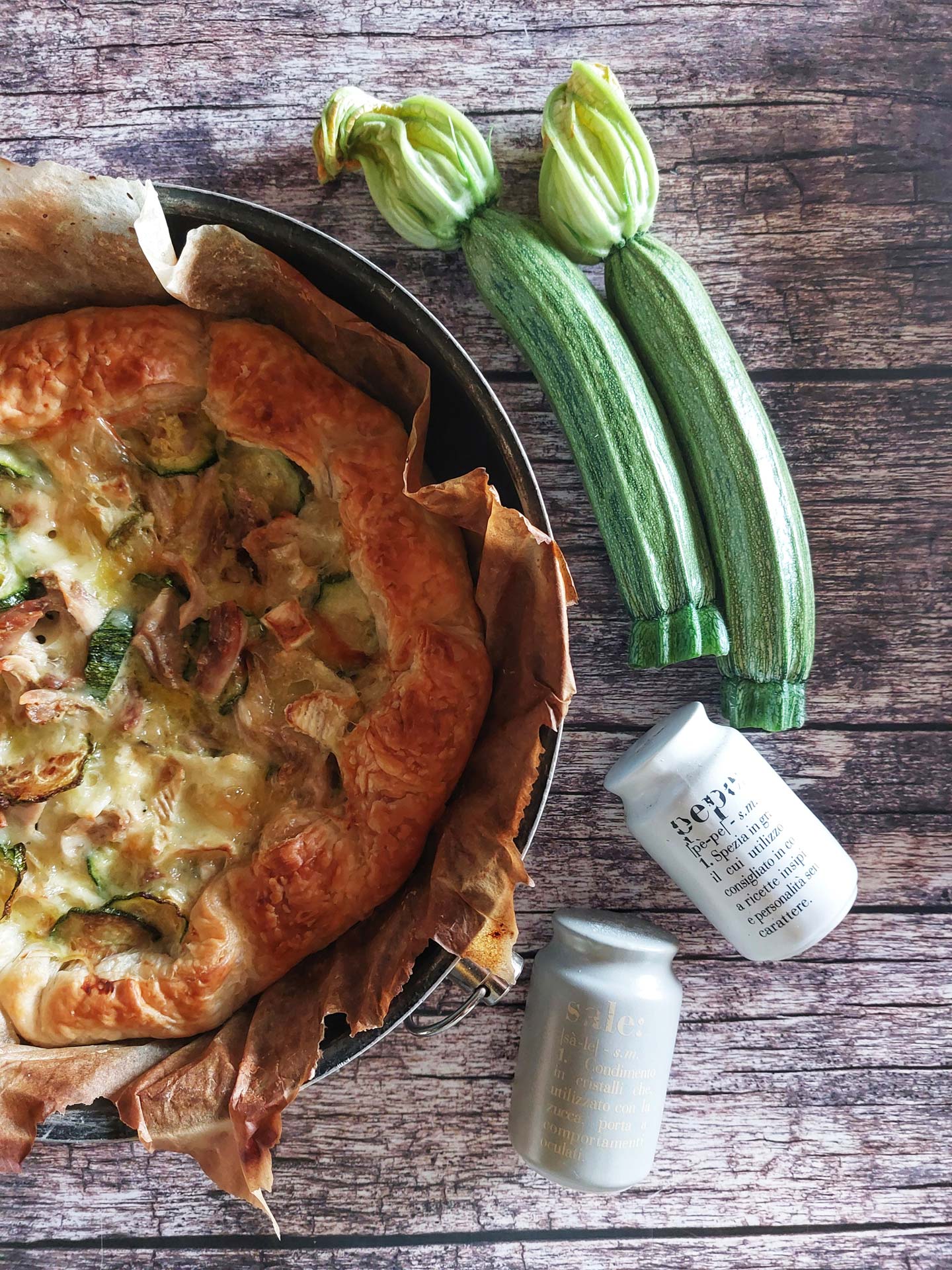 Torta salata con carne di quaglia, brie, zucchine e panna